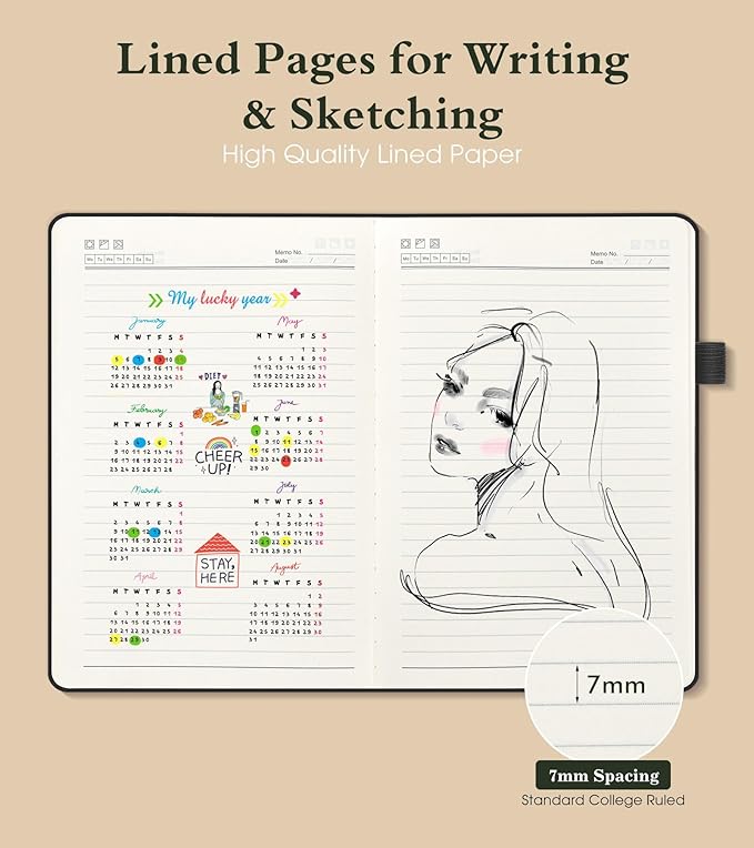 - 【180° Lay-Flat Binding for Effortless Writing】:The journal’s lay-flat design allows full-page access, making writing, reading, or note-taking comfortable for both left- and right-handed users. No more curled pages—perfect for extended writing sessions in meetings, classes, or while traveling.
