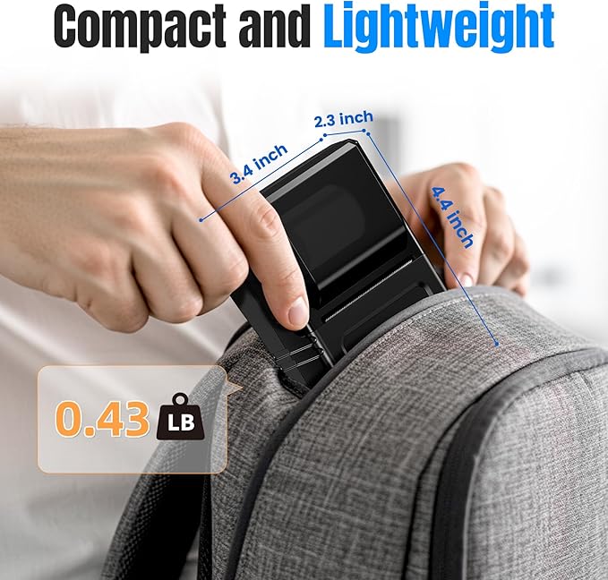 - [Tiny But Mighty] This portable mini printer weigh just 0.43 pound can be easily stored in a pocket or handbag, suitable for travel, home, office. The standby time of the rechargeable battery is up to 1 months on a single charge.