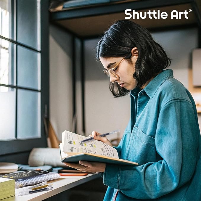 Shuttle Art Colored Pens, 22 Black White Gray & Metallic Tone Colors Cute Journal Pens 0.6mm Fine Point Colored Gel Pens for Black Paper Writing Drawing Journaling Note Taking School Office Home