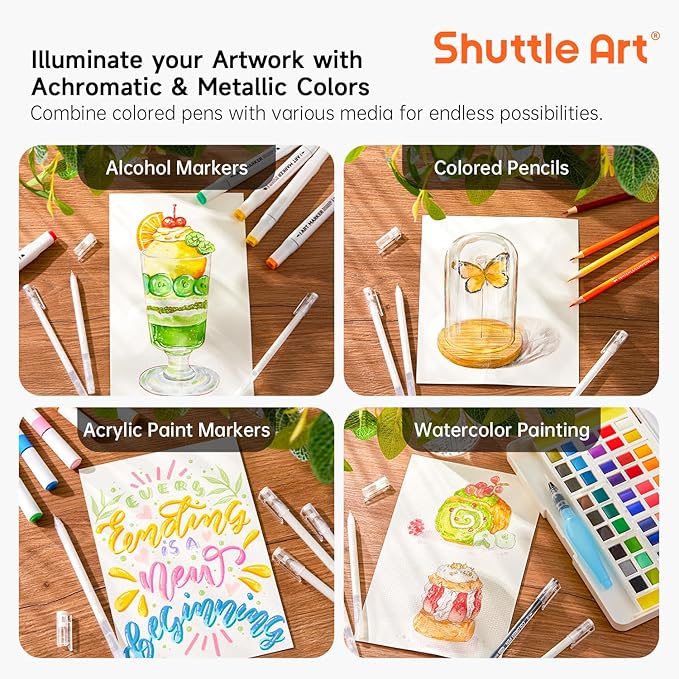 - SMOOTH WRITING & EASY LAYERING: The optimized 0.6mm fine point with silky ink delivers skip-free and precise glides all the time. The opaque colored ink is also great for layering. Suitable for adding highlights to your artworks with alcohol markers, colored pencils, acrylic paint markers, watercolor painting and so on. Unlock endless creative possibilities!