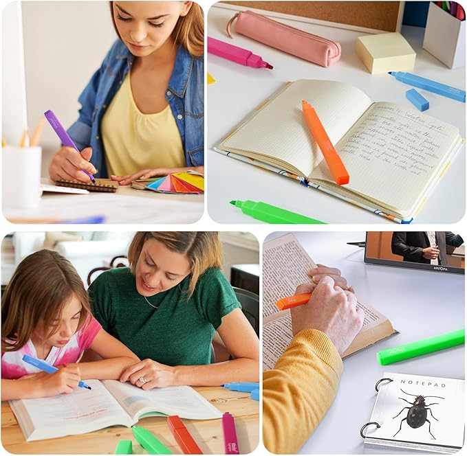 - Easy to Hold:Our highlighter is designed with square shape,it’s comfortable and easy to grip without a sore hand, and square pen body makes it non-rolling, not easy to roll off the table