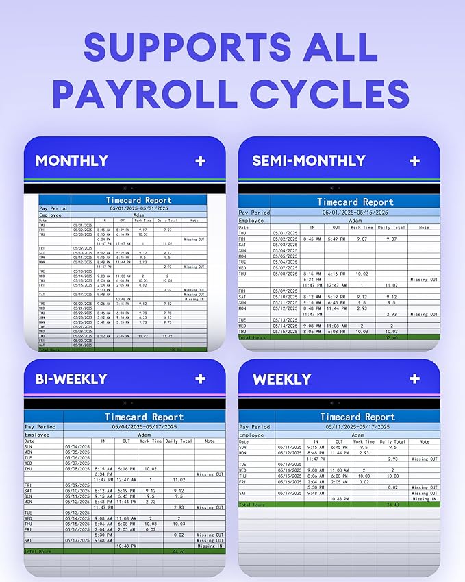 - Eco-Friendly & Fully Digital Management: Replace paper cards! This digital clock in machine supports unlimited daily punches and syncs with the NGTeco Time App (2.4G Wi-Fi) to set pay periods and download reports—saving small businesses time and supply costs.