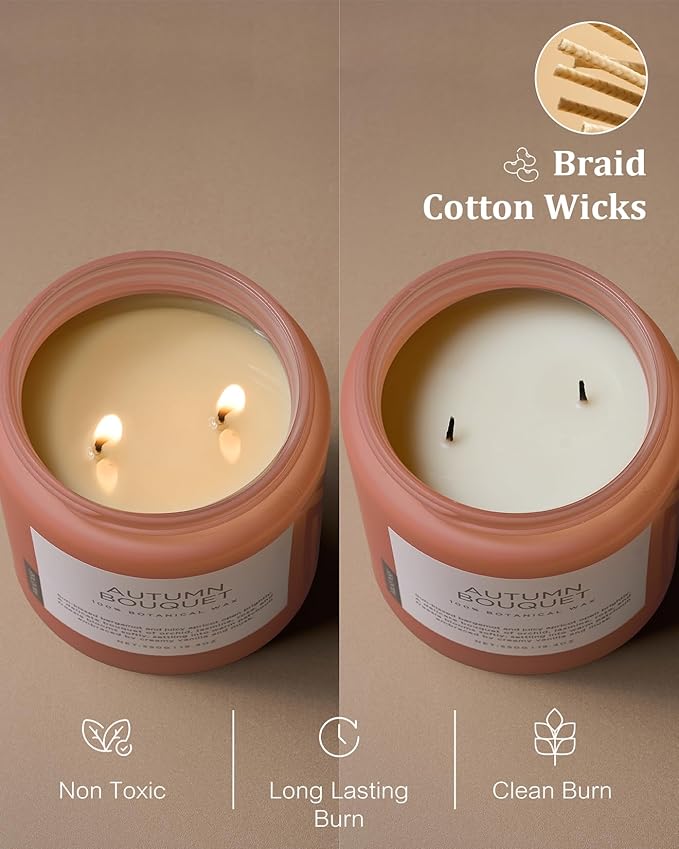 M&SENSE Fall Candle Autumn Flower Scented, Large 19.4oz Natural Soy Wax 110 Hours Burn Time Clean Non Toxic Candle Classic 2 Wicks Gifts
