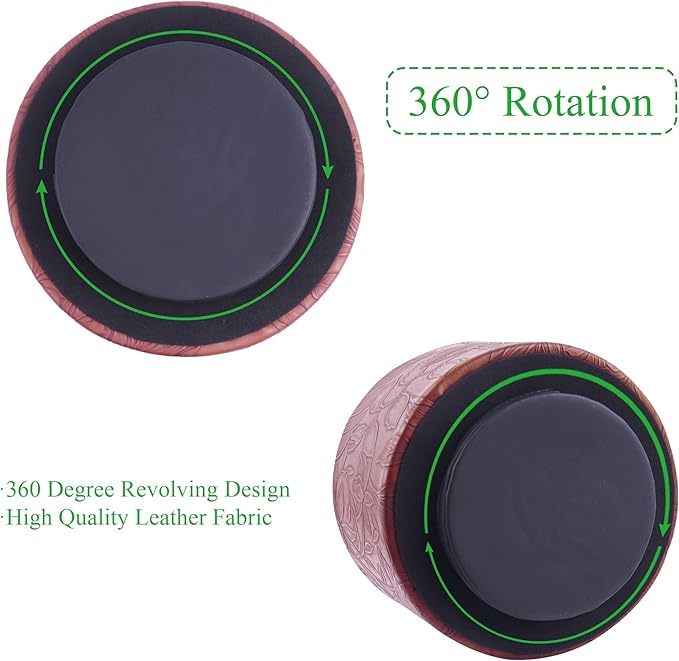 Hennaja Round Leather Art Supply Organizer,Remote Control Holder,360 Degree Spinning,Multi-Functional Pencil Holder,4 Compartments Desktop Stationary Organizer(1-Carved Dark Brown)
