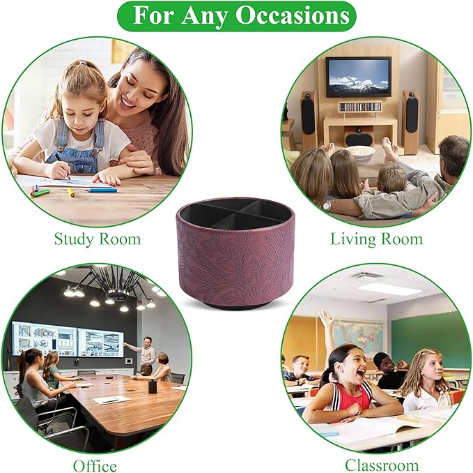 - ✎360° Revolving Design: You can freely rotate the pen holder steadily left and right,unique spinning base design allows easy access to items from any directions.The non-slip pads on the bottom keep it stay in place when rotating.