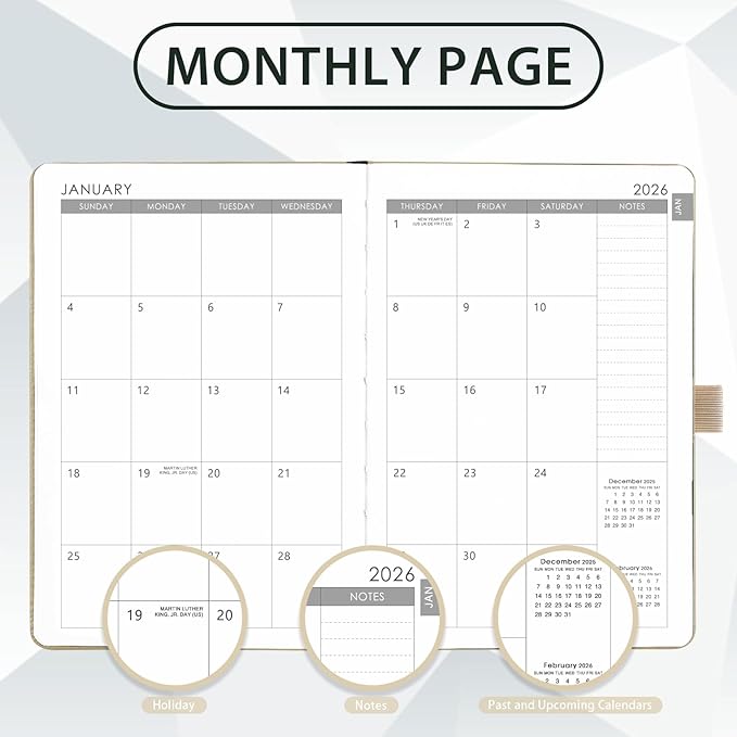 - Planner 2026 - Classic planner from January 2026 - December 2026, featuring 12 months of weekly/monthly pages/holidays marked. This 2026 planner offers unruled monthly pages/ruled weekly layouts for detailed planning.