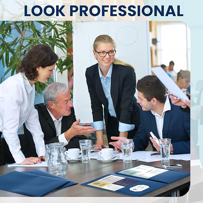 - Easy to Use: the navy blue plastic 2 pocket folder allows you to easily insert or remove paper, and the four-corner business card holder prevents popping out, combining fashion sense and storage space; Each plastic pocket folder is flexible, durable, easy to clean and waterproof, which is very suitable for organizing and keeping your work environment tidy