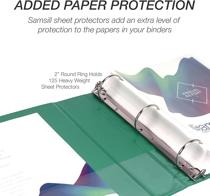 Samsill 2 Inch 3 Ring Binder, Made in USA, Economy Round Ring, Clear View Cover, 425 Sheet Capacity - for School, Home, Office - Forest Green
