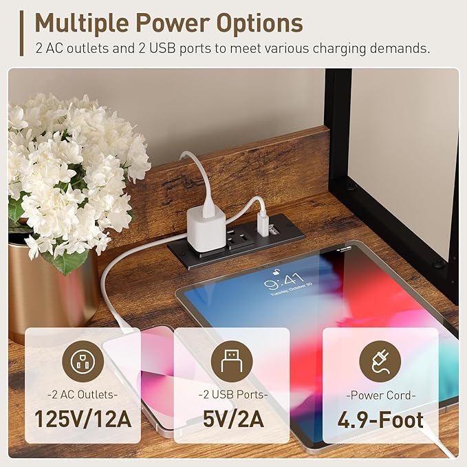 - Charging Convenience: The file cabinet's charging station offers 2 AC and 2 USB ports. It's a convenient place to charge your phone, tablet, or printer. Take a work break to recharge devices and yourself, making work and life blend smoothly