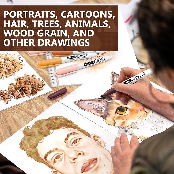 - Versatile Creation Tool: Whether you're working on portraits, comic characters, hair details, trees, animal, coloring books, Writing labels, or wood grain restoration, the SFAIH skin tone permanent marker handles it all effortlessly. Its versatility makes it ideal for both professional artistry and everyday aesthetic projects.