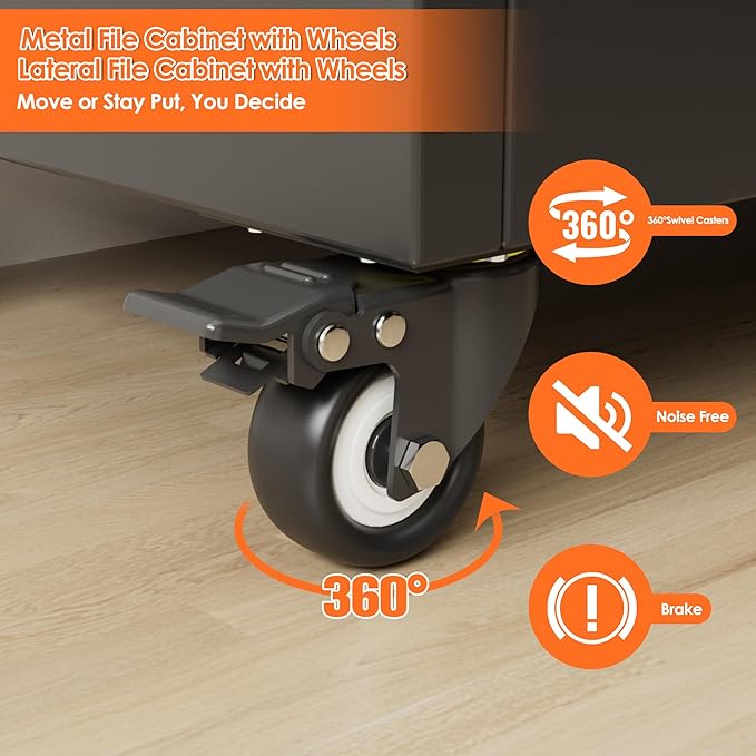 Aobabo Metal 3 Drawers Lateral File Storage Cabinet and Unit Adjustable Shelf Organizer, Steel Files Cabinet with Wheels, 2 Door Storage for Office Legal/Letter A4 Size, Assembly Required, Black