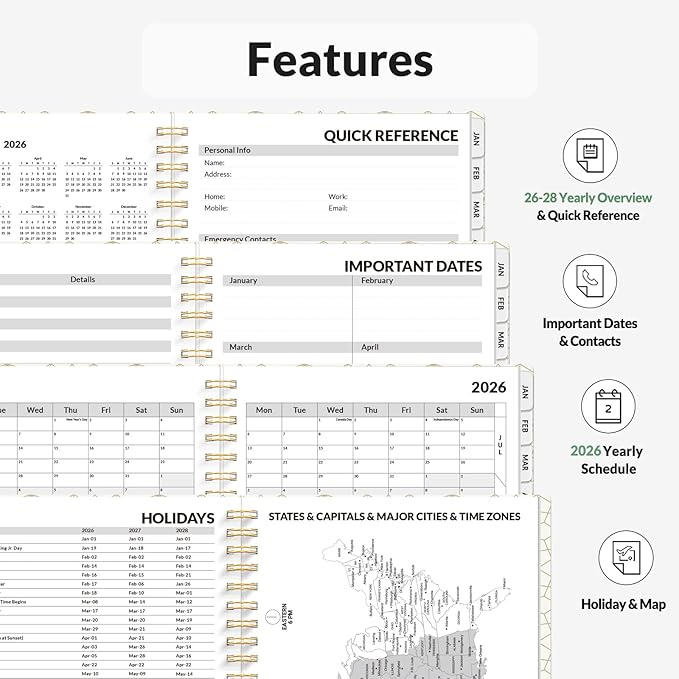 - Plan Confidently β Cover from January 2026 to December 2026, Features 12 months of monthly and weekly pages, and also inclueds 3 extra monthly pages for October to December 2025 and 12-monthly tabs, with Lay-flat capability for all your planning and scheduling needs, and measures 6.4" x 8.3"
