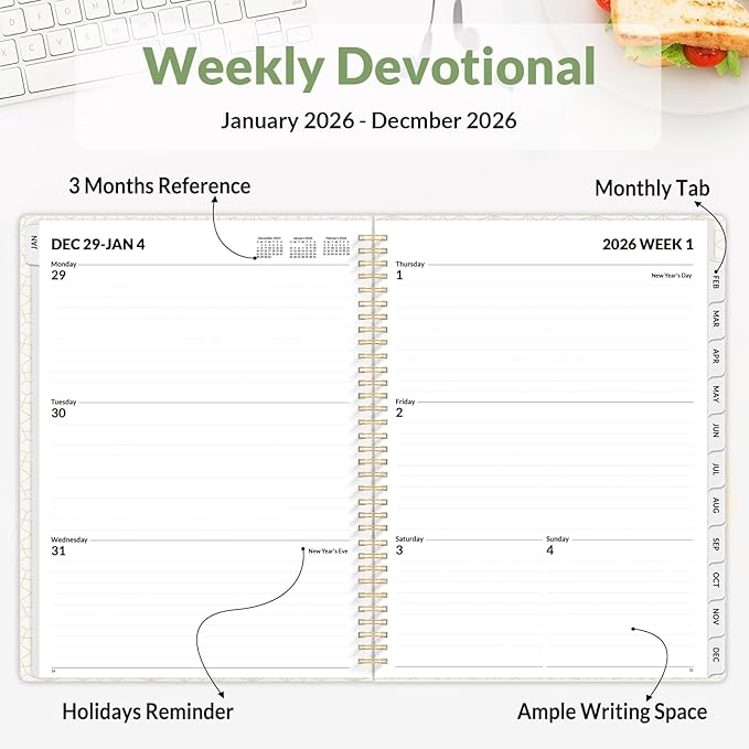 - Plan Confidently β Cover from January 2026 to December 2026, Features 12 months of monthly and weekly pages, and also inclueds 3 extra monthly pages for October to December 2025 and 12-monthly tabs, with Lay-flat capability for all your planning and scheduling needs, and measures 8.5" x 11"