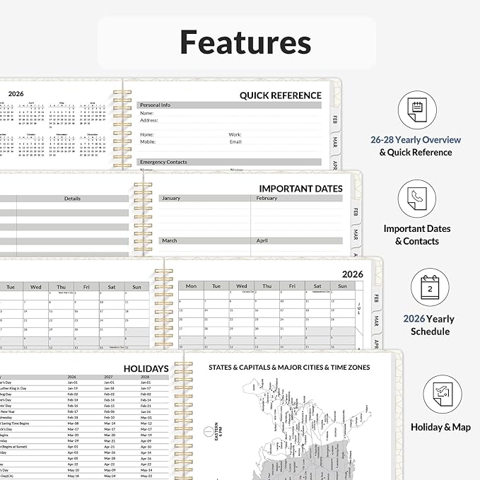 - Plan Confidently β Cover from January 2026 to December 2026, Features 12 months of monthly and weekly pages, and also inclueds 3 extra monthly pages for October to December 2025 and 12-monthly tabs, with Lay-flat capability for all your planning and scheduling needs, and measures 8.5" x 11"