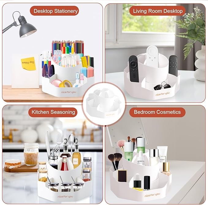 - 【Multifunctional Desktop Organizer for Stationery, Cosmetics, and Kitchen】:This pencil organizer for desk isn’t just for pens and markers—it’s a multifunctional solution for storing cosmetics, skincare products, makeup brushes, and even kitchen spices. Organize your makeup essentials, cosmetics, or small kitchen items like seasoning bottles, making it a versatile storage solution for any room