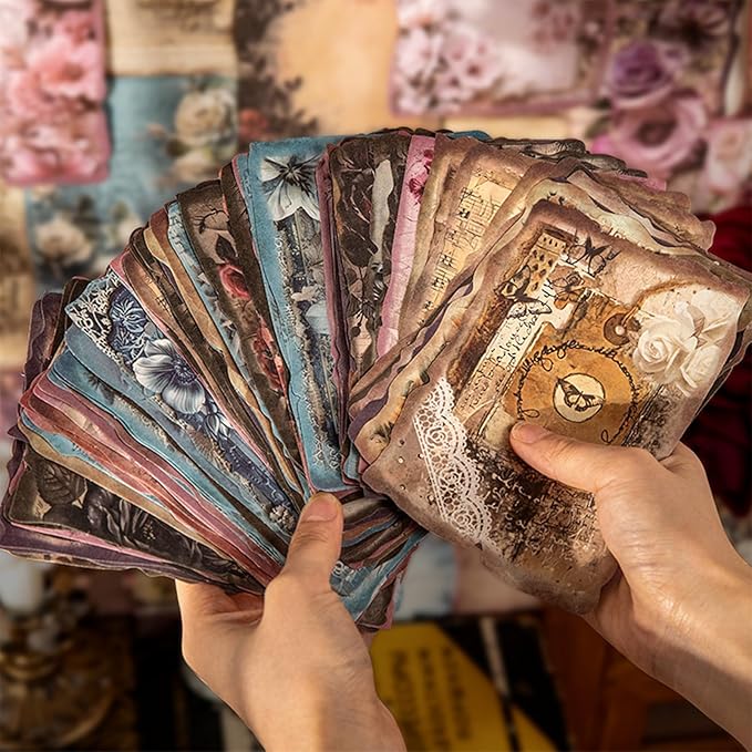 - 【Assorted】 180 sheets Rose Story Style Scrapbook Paper in 6 packs(60 designs), featuring multiple vintage patterns for scrapbooking, collage projects and junk journals. Each pack contains non-repeating designs
