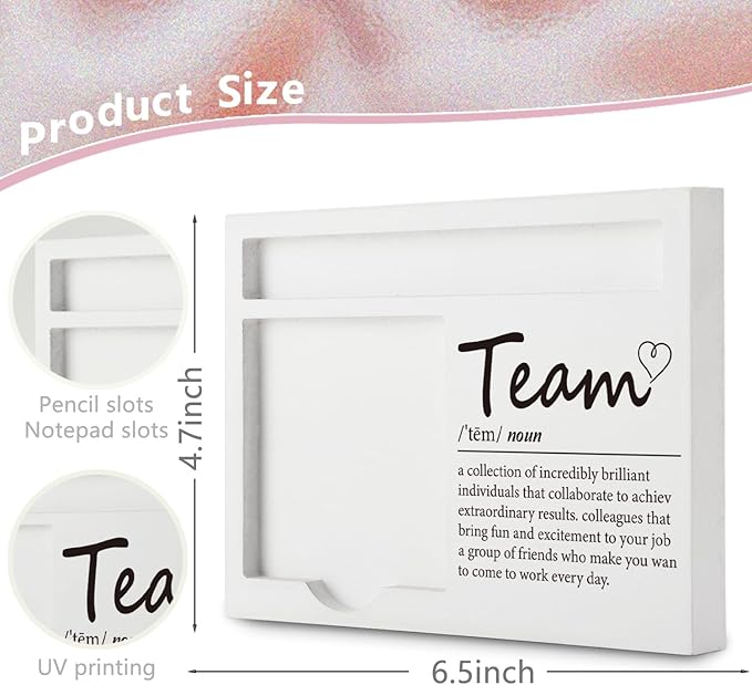 Teamwork Appreciation Gift, Wooden Sticky Note Holder, Office Desk Organizer for Coworkers, Employees, Leaders, Appreciation Thank You Gift for Team, Boss, Colleagues, Christmas, Birthday YBB04