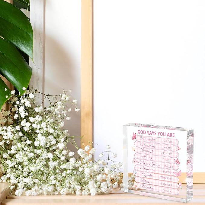 Pink Christian Wall Decor - 4x4 Inch Acrylic Scripture Sign with Butterfly Graphic, Inspirational Bible Verses for Bedroom and Office, Faith-Based Gift for Women
