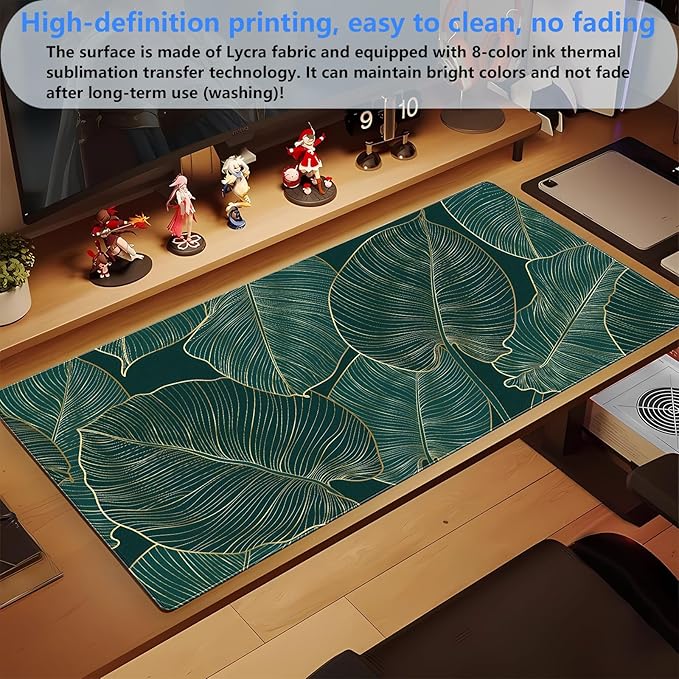 Green Desk Mat Monstera Palm Leaf Mouse Pad Large Gaming Mouse Pad XL Full Desk Mousepad Extended Keyboard Mat Big Long Mouse Mat Computer Laptop Desktop Mat Pad Desk Decor 31.5''X15.7''