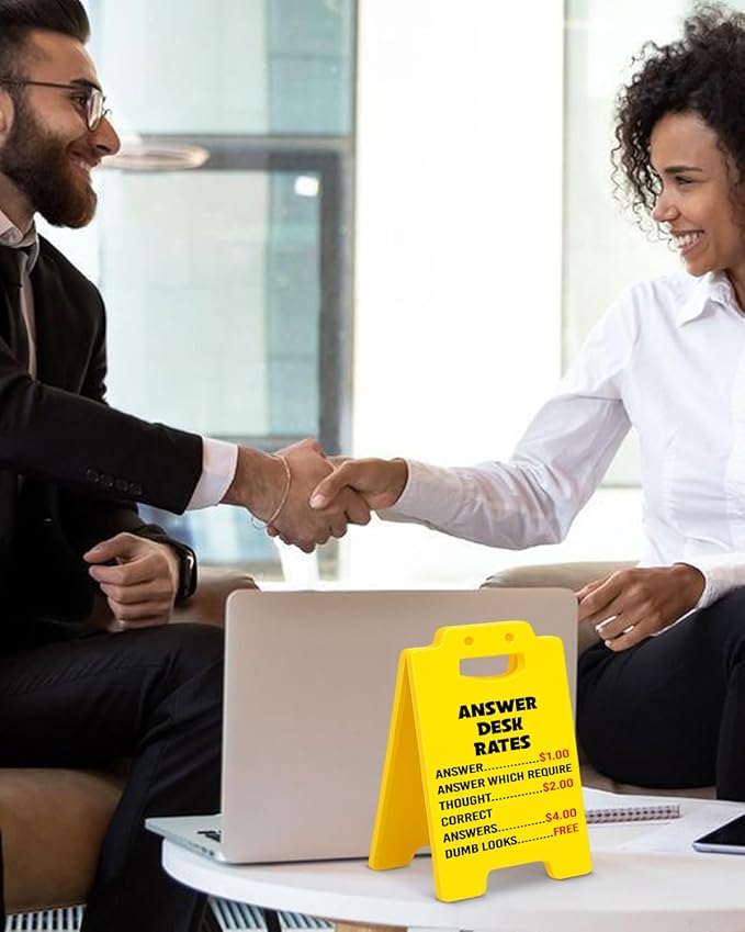 Answer Desk Rates Sign, Funny Office Desk Sign Office Cubicle Decor Fun Gag Gift for Coworker Teammate Boss Leader