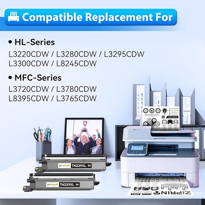 - [HL series printer]:Ziprint TN229XL TN229XLBK Toner Compatible for Brother HL-L3280CDW HL-L3220CDW HL-L3295CDW HL-L3300CDW HL-L8245CDW toner