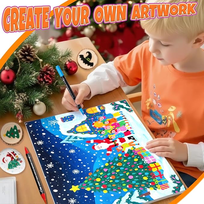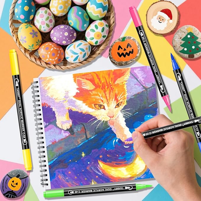 - MULTI-SURFACE COMPATIBILITY:Create on almost any surface with confidence! These 80 dual-tip markers work beautifully on paper, ceramic, glass, wood, fabric, rock, plastic, and more. Ideal for smooth, porous, or textured materials, they’re your go-to for custom projects—whether you’re designing mugs, decorating eggs, making holiday ornaments, or creating professional artwork. Perfect for artists, crafters, students, and DIY enthusiasts.