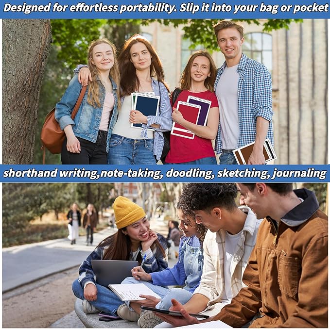 - [Versatile Utility]:Top bound spiral notebooks 6 x 9 in serve multiple purposes, acting as versatile tools for shorthand writing, note-taking, doodling, sketching, journaling, or organizing thoughts,make them an indispensable learning tool for any professional, academic or personal task. In addition, 6 x 9 in steno spiral notepads also is the ideal gift choice for friend, family, classmates and colleagues.