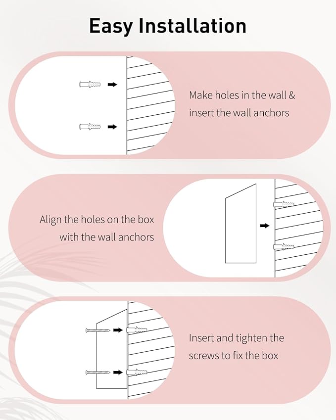 - Ultra-convenient Design: Greatly optimized connection between the top cover and the back plate. Use flexible piano hinge instead of common screws. You can install it tightly against the wall and open the cover completely without hitting the surface