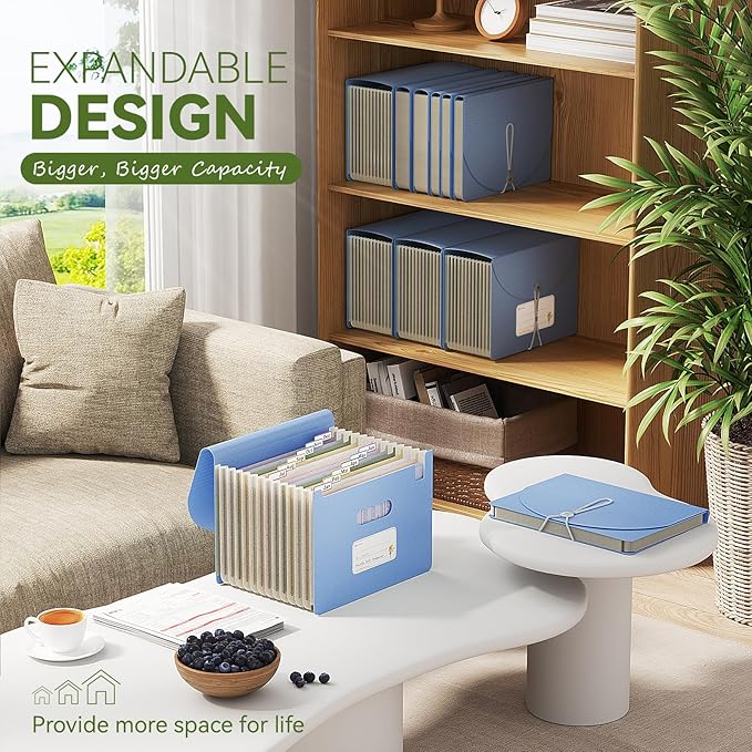 Accordion File Organizer, 12 Pockets Wheat Straw Expanding File Folder, Portable Monthly Paper Bill Tax Receipt Organizer, Letter A4 Size Document Holder,Green Office with Colorful Tab,UN Blue
