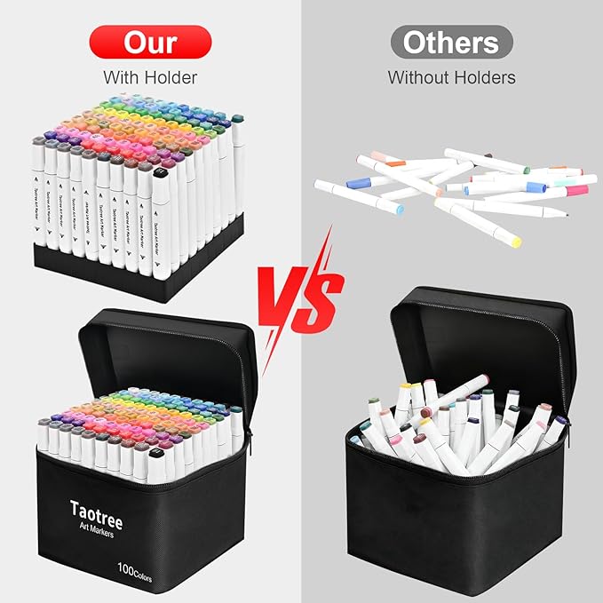 Taotree Alcohol Markers 100 Colors with Case & Holders, Dual Tips Art Coloring Markers Pens, Chisel & Fine Art Supplies Sketch Pens for Artist Kids Adult Coloring Books Drawing, Painting, Sketching