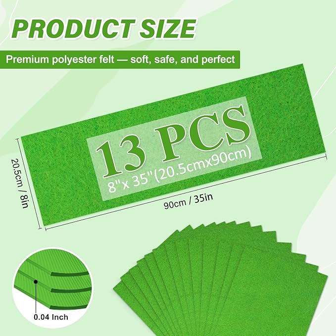 - 【Felt Fabric Set】: Our green felt fabric set includes 13 rolls total, each measuring 20.5 x 90 cm (8" x 35") with a 1.4mm thickness
