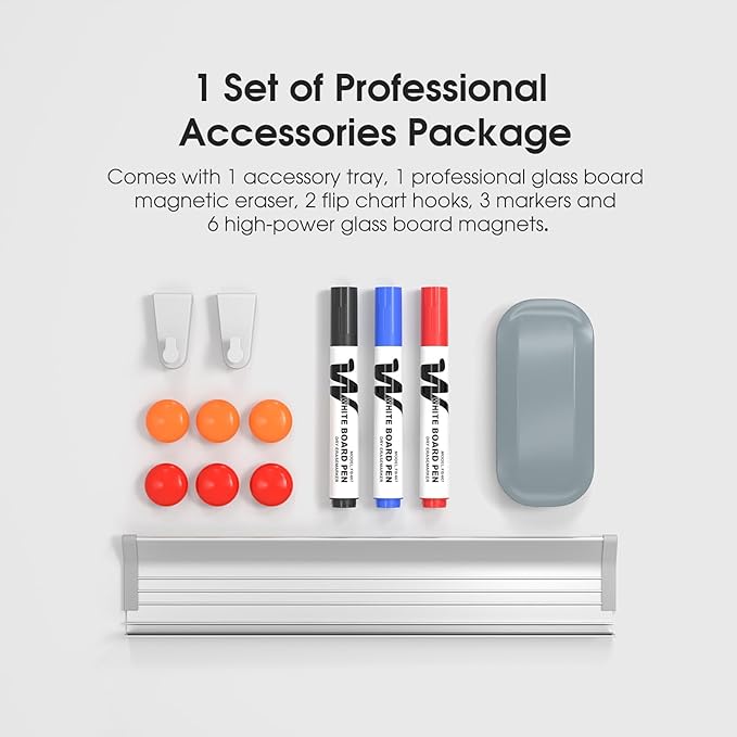 - 15-Minute Fast Installation with Complete Professional Accessories: Comes with an installation template, accessory tray, premium magnetic glass board eraser; easy setup within 15 minutes for horizontal or vertical mounting