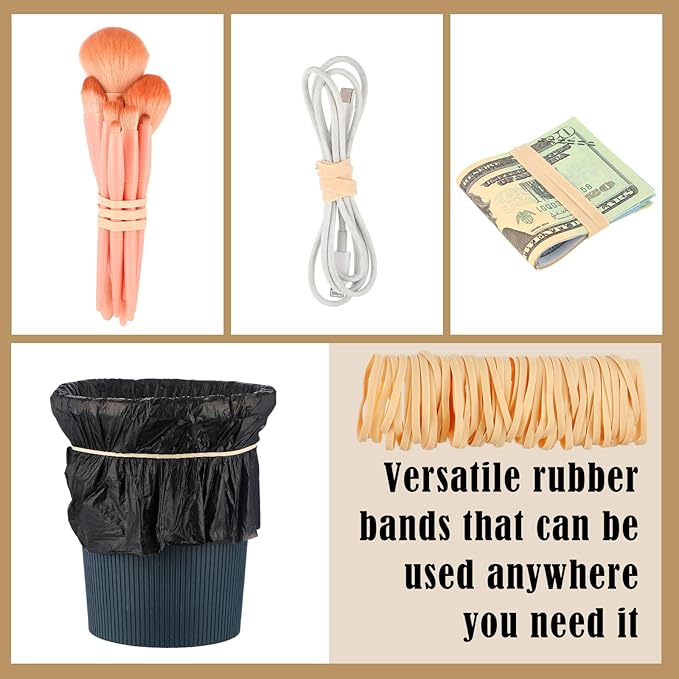 - High elasticity: This rubber bands are made of 1/4 thick rubber material. Its good elastic design can effectively reduce strain caused by excessive force in repeated bundling tasks. Whether it is applied for office document organization, kitchen utensil fixing, or DIY handicraft, this rubber bands can provide stable and reliable performance to meet daily diverse needs