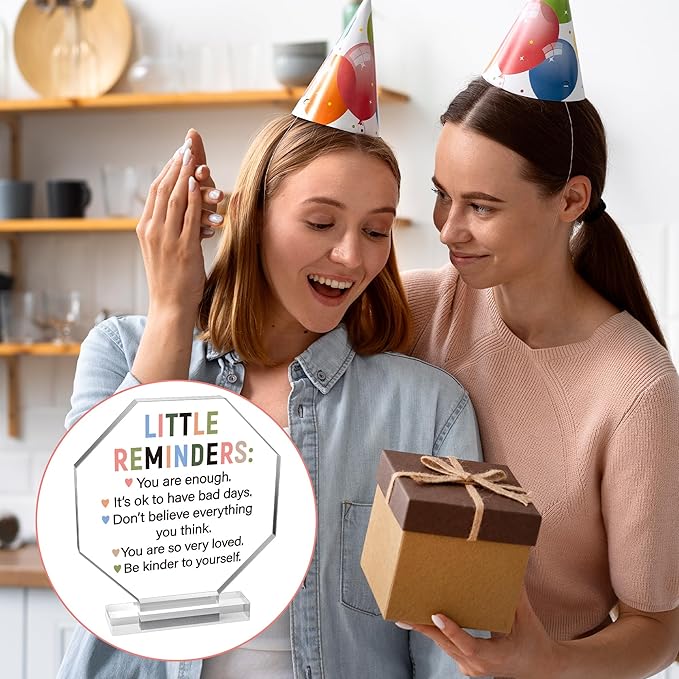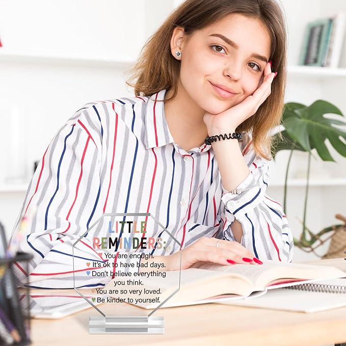 Yopyame Acrylic Inspirational Gift Ideas - Little Reminders You are Enough Acrylic Gift for Women Men Friends Coworker Inspirational Motivational Keepsake Paperweight Clear Desk Sign Office Home Decor