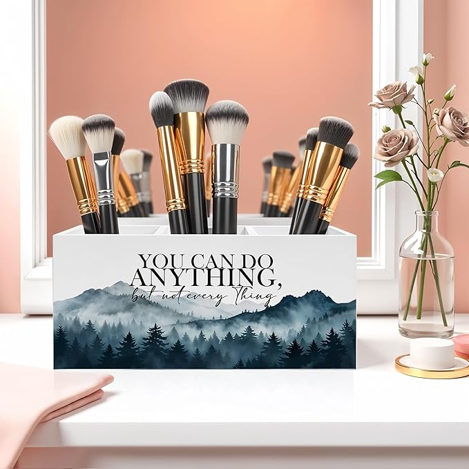 Mountains Forest Inspirational Pencil Pen Holder for Desk, You Can do Anything But Not Everything Wooden Pencil Holder Organizer for Home Office Desk Accessories, Encouragement Gifts