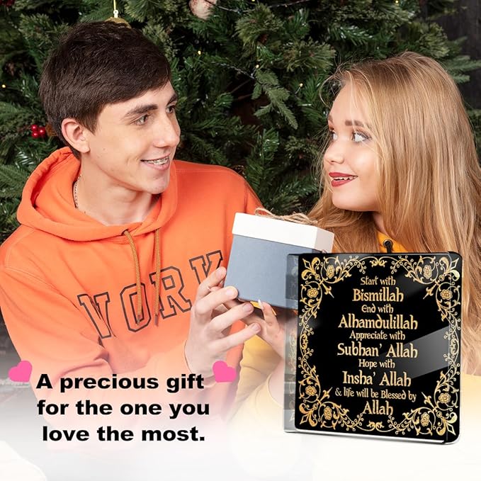Islamic Black Golden Desk Decor Acrylic Sign, Start End with Allah Appreciate Hope with Allah,Eid Ramadan Mubarak Desk Decorative Signs for Tabletop Cubicle Room Office