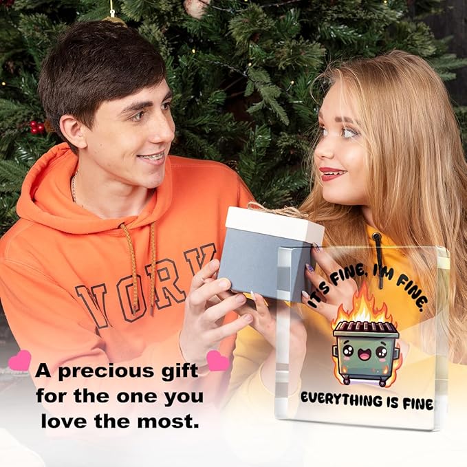 White Elephant Gifts, Funny Desk Decor, Dumpster and Fire Acrylic Sign - i am fine, everything is fine, Office Supplies Cubicle Table Shelf Decor, Funny Gifts for Coworkers Nurse Teacher Friends