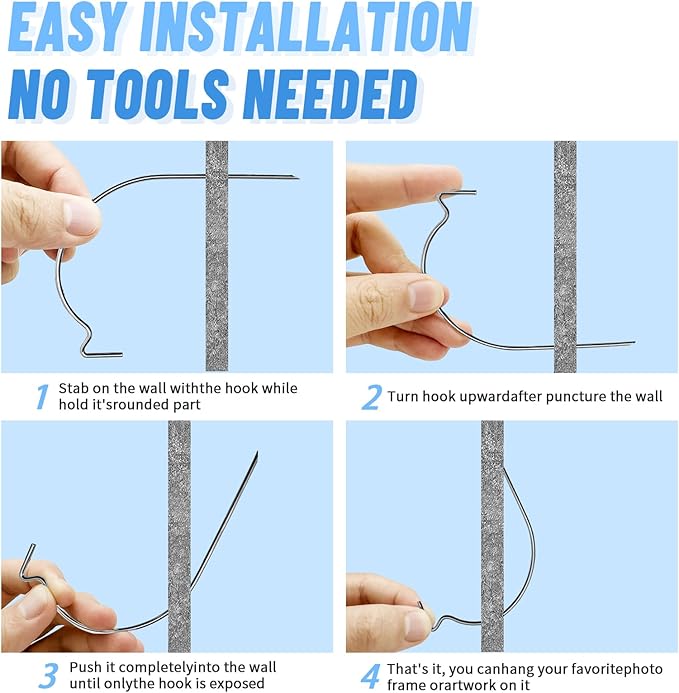 - Light and Sturdy:These lightweight drywall hooks are sturdy and strong enough to support about 100 lbs
