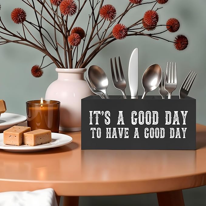 Inspirational Quotes Pencil Pen Holder for Desk, It's A Good Day to Have A Good Day Wooden Pencil Holder Organizer for Home Office Desk Accessories, Encouragement Gifts for Women Men