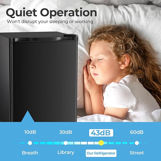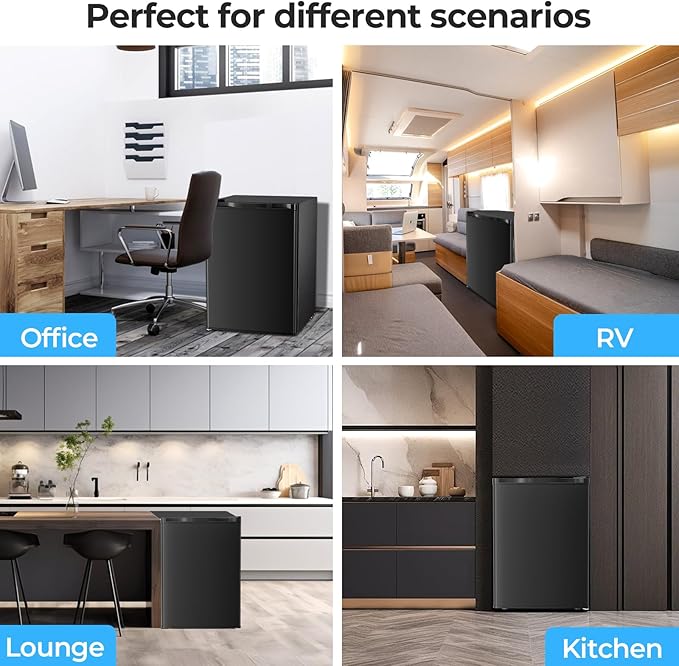 - Golden capacity, compact and does not take up space: 2.34cu.ft refrigeration & 0.22cu.ft freezing dual-zone configuration, scientific division of fresh and frozen space; 17.52"W x 19.09"D x 25.00"H, small space can also realize large-capacity storage.