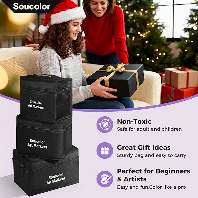 - 5. UNLOCK CREATIVITY: COMPLETE VALUE SET:This Soucolor ultimate art kit (markers + stand + case!) delivers exceptional value with non-toxic, safe. Unlock creativity with a rainbow at your fingertips – Unlocking artists, students, and hobbyists to explore endless possibilities.