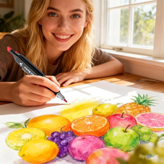 - 1. DUAL-TIP MARKERS FOR ULTIMATE VERSATILITY:Each marker features both a fine tip for precise lines/details and a broad tip for calligraphic strokes & shading. Perfect for illustration, journaling, coloring books, and professional-grade artwork. Unlock endless artistic possibilities with one tool!