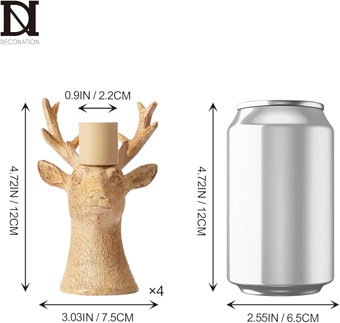 - 【Rustic Set of 4】 This set includes 4 reindeer candle holders (3.03x4.72in) for taper candles up to 0.9in. Featuring reindeer heads and antlers in a rustic brown finish, they combine vintage charm with rustic Christmas decor, ideal for table centerpieces and mantel displays