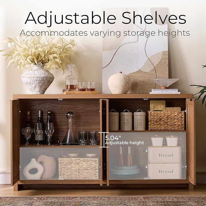 - [Adjustable Shelf Height] - Customize your storage with ease! The interior of Walsham buffet storage cabinet (29"L x 15.4"W x 27.6"H) features a DIY adjustable shelf that can be moved up or down by 5'', creating flexible space for tall dishes, small appliances, or decorative baskets