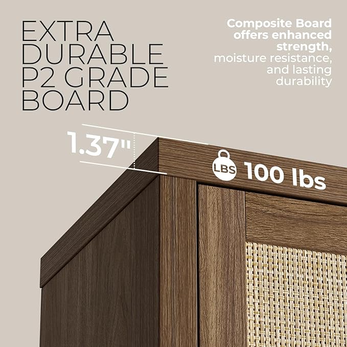- [Extra-Large 61" Sideboard] - Walsham oversized rattan buffet cabinet (61"L x 15.4"W x 32.75"H) provides massive storage, perfect as a farmhouse kitchen buffet, kitchen storage cabinet, or a stylish living room console cabinet for organizing all your essentials
