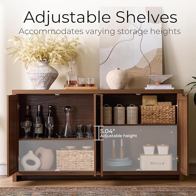 - [Adjustable Shelf Height] - Customize your storage with ease! The interior of Walsham buffet storage cabinet (29"L x 15.4"W x 27.6"H) features a DIY adjustable shelf that can be moved up or down by 5'', creating flexible space for tall dishes, small appliances, or decorative baskets