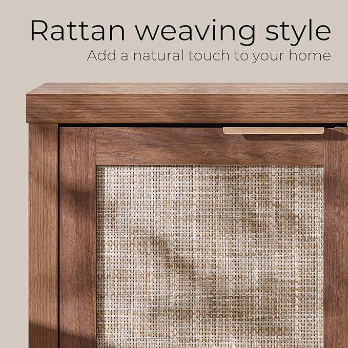 - [Bohemian Classic Farmhouse]-Walsham console cabinet features a realistic rattan texture, bringing natural textures and farmhouse charm to your kitchen, living room or entrance passage. The sideboard is equipped with a hidden golden handle, adding a modern and luxurious feel