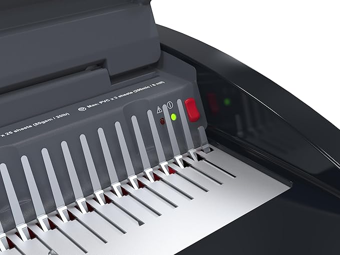 - PUNCHES 25 SHEETS – All-in-one electric punch and bind machine makes punching simple. Punches up to 25 sheets at a time.