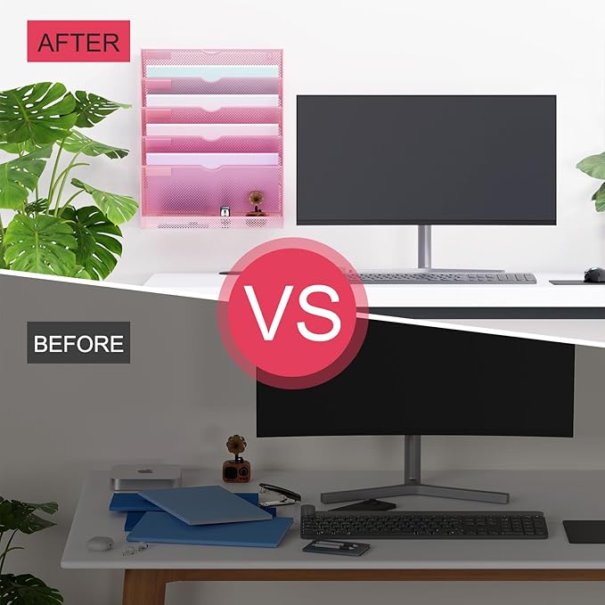 - 【Durable Metal Structure】Our wall mounted file organizer is made of high quality metal mesh. The metal structure is powder coated to resist oxidation and rust, making this wall mounted office file organizer of superior quality and durability.