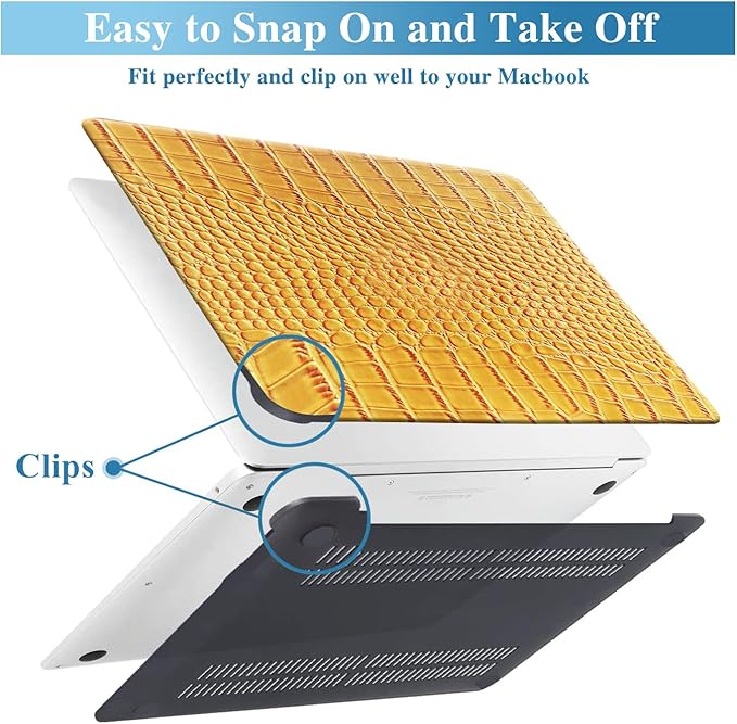 - **Slim Protection, Pro Cooling:** This yellow crocodile MacBook Air 13 inch case offers reliable durability without adding unnecessary bulk or weight to your device, allowing easy installation and removal. The heat dissipation vent holes effectively prevent overheating, while the rubber feet provide stability and a non-slip grip.